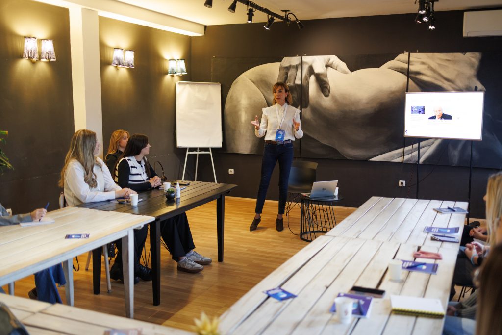 Vesna Damjanić, glavna urednica Bloomberg Adria TV-a, govorila je o značaju agencijskog novinarstva i ulozi ekonomskih medija na savremenom medijskom tržištu. Posebno je istakla tehnike intervjua i važnost dobre pripreme za snimanje. Polaznicima je pružila jedinstveni uvid u rad Bloomberga iza kulisa, objašnjavajući kako funkcionišu različite emisije.